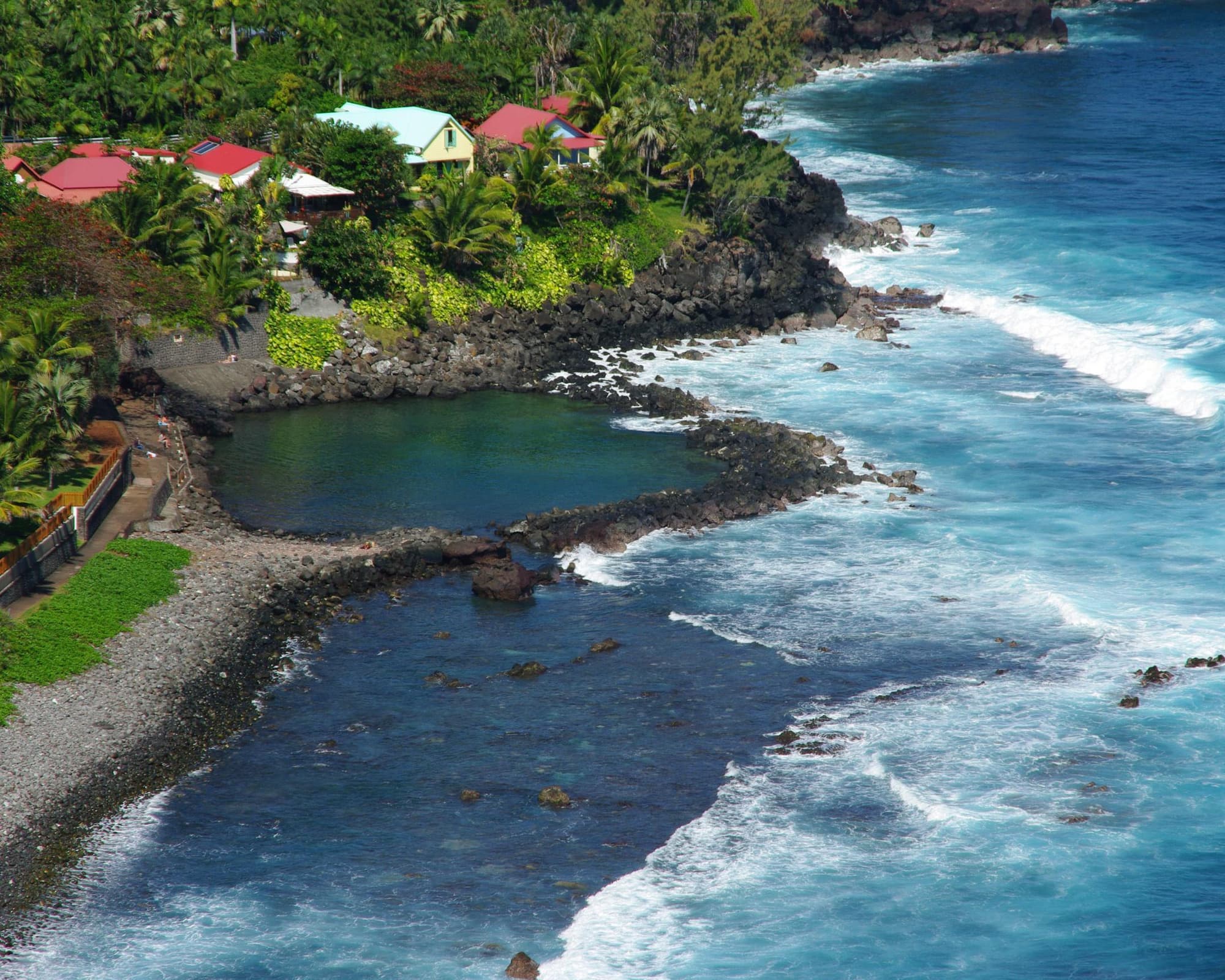 Entdecken Sie Saint-Joseph: Ein Juwel auf La Réunion Eingebettet in die üppige Südküste von La Réunion, ist Saint-Joseph ein fesselndes Reiseziel, das einen authentischen Einblick in das Insel-Leben bietet. Diese ruhige Stadt ist umgeben von grünen Landschaften, ragenden Gipfeln und den funkelnden Gewässern des Indischen Ozeans, was sie zu einem idealen Ort für Abenteuersuchende und Naturliebhaber gleichermaßen macht. Beginnen Sie Ihre Reise mit einem Spaziergang durch das Herz von Saint-Joseph, wo Sie in die lebendige lokale Kultur eintauchen können. Das Stadtzentrum ist gespickt mit charmanten Cafés, bunten Märkten und Kunsthandwerksläden, die das einzigartige kreolische Erbe der Insel zur Schau stellen. Probieren Sie unbedingt die lokale Küche, die eine köstliche Mischung aus französischen, afrikanischen, indischen und chinesischen Einflüssen ist. Versuchen Sie die traditionellen Caris (Currys) und Rougails (tomatenbasierte Gerichte) und genießen Sie süße Leckereien wie den berühmten Gateau Patate, einen Süßkartoffelkuchen, der ein lokaler Favorit ist. Für diejenigen, die darauf erpicht sind, die große Natur zu erkunden, ist Saint-Joseph Ihr Tor zu einigen der atemberaubendsten Naturattraktionen von La Réunion. Machen Sie eine Wanderung durch das Gebiet von Manapany-Les-Bains, wo Sie ein Netzwerk von Wegen finden, die sich durch die üppige tropische Vegetation schlängeln. Verpassen Sie nicht die Gelegenheit, den Fluss Langevin zu besuchen, wo der spektakuläre Cascade de Grand Galet, auch bekannt als Langevin-Wasserfall, auf Sie wartet. Hier können Sie die kraftvollen Wasserfälle beobachten, die in ruhige Becken stürzen, perfekt für ein erfrischendes Bad. Auch Wassersportbegeisterte finden in Saint-Joseph ihr Paradies. Die Küstenlinie der Stadt ist gesäumt von unberührten Stränden, wie der Plage de Grande Anse, einer malerischen Bucht, die von Palmen und Basaltklippen umrahmt wird. Es ist ein hervorragender Ort für einen entspannten Tag unter der Sonne oder zum Schnorcheln in den klaren, türkisfarbenen Gewässern. Währenddessen können sich die Abenteuerlustigen zum Cap Méchant begeben, einem dramatischen felsigen Vorgebirge, wo die Ozeanwellen gegen die Lavafelsen schlagen und eine spektakuläre Naturschau kreieren. Ob Sie sich in die lokale Kultur vertiefen, durch atemberaubende Landschaften wandern oder einfach am Meer entspannen möchten, Saint-Joseph ist ein Reiseziel, das ein unvergessliches Erlebnis auf La Réunion verspricht.